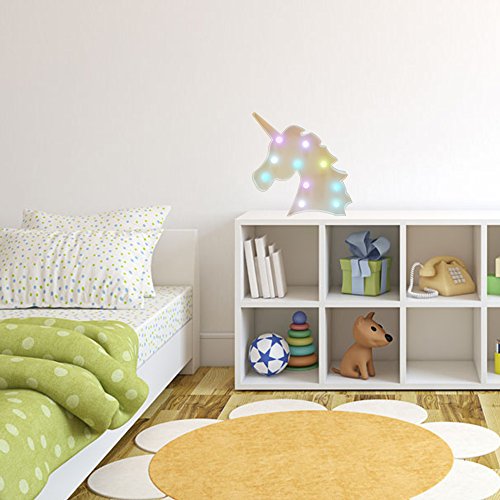 - ✔ The Colorful Unicorn Light is safe to use,no wiring,cables or cords required, only need 2 x AA batteries (not included), have ON and OFF switch. Designed with stable feet,you can situate it on a flat surface firmly. It also has a hole at the back, can be hung on the wall or placed on mantle, shelf, table, dresser or any corner in your home.