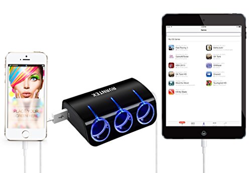 - Feature : Three 12V / 24V cigarette lighter sockets (DC outlets) provide a total power of up to 120W, enough for simultaneous use of a variety of portable appliances in your vehicle / 2 USB charging ports rapidly charge two personal electronic devices simultaneously: iPhones, Android smartphones, GPS's, MP3 players, iPads, tablet computers, etc / Smooth and shiny plastic surface with streamlined appearance and 3 embedded blue LED lights make this car adapter / charger a perfect combination of functionality and aesthetics / Designed with high safety standards: protective circuits and high quality components prevent the product or your devices from overheating or overloading / USB charging cables are not included in the package of this product; please use the cables provided with your electronic devices for connection.