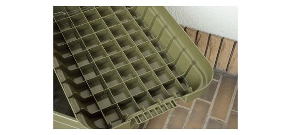 ●・フタの裏は格子状のリブを立てた特殊構造。