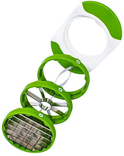 EFFORTLESS FRIES & SLICES Three interchangeable blades on our apple slicer relieve you from cutting your veggies and fruits manually. Create slices, wedges, sticks and fries in seconds! One swift push and you snack on 8 slices/wedges or 36 sticks/French fries. Don’t slog through tedious chopping to prepare a snack or meal!