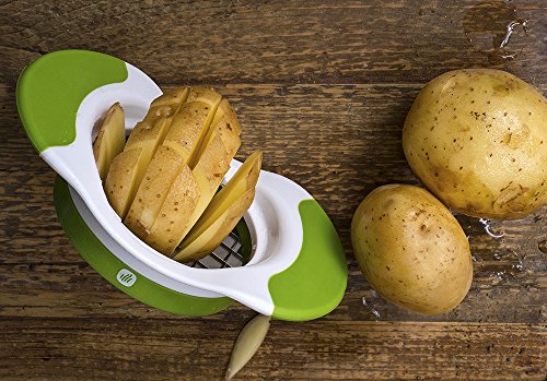 TASTIER MEALS Thanks to the equally large sections of our potato slicer, your individual slic-es/fries/wedges will come out consistent in size. That way, no almost-raw pieces among overcooked ones ruin your meal.