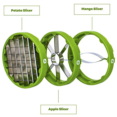 Apple Slicer Corer Mango Slicer and Potato Slicer with FREE eBook, COOKING VIBE Interchangeable 3 in 1 Slicer with Sharp Stainless Steel Blades and ergonomic BPA-free Grips