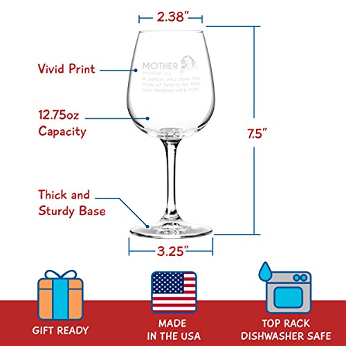 Product Description DuVino creates fun wine accessories and unique funny novelty wine glasses with sarcastic jokes, memes and hilarious sayings. Whether you need a memorable birthday present for your best friend, wife, girlfriend, mom, sister, or coworker they'll enjoy for years, we've got you covered. Need a cool gift for a bridal shower, housewarming, or hostess? Your search is over! Funny wine glasses are also great for Christmas gifts, holiday office parties and dirty santa / white elephant gift exchanges Imagine their face when they open the box to find "Mother definition" funny wine glass. It's a LOL guaranteed! They'll think of you every time they take a sip of their favorite vino and smile for years to come. Our wine glasses are designed, made and packaged in the USA. The fun logos are printed and then oven fired to ensure a long lasting, dishwasher safe finish. We inspect each glass for any flaws in print or scratches before we roll each glass in bubble wrap for safe shipping. We then lovingly pack in a durable white box ready for gifting! 0 |
