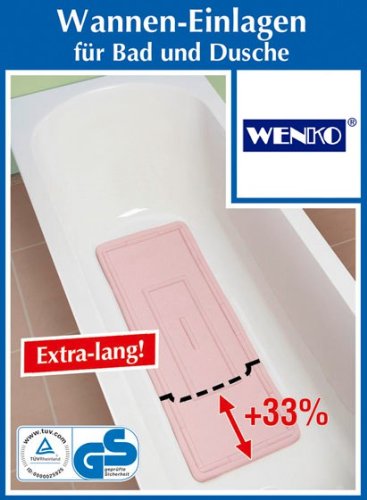 -. Feature : WENKO Wanneneinlage Florida / Rutschstopp-Struktur auf der Oberseite / Saugnäpfe auf der Unterseite - Farbe: rosa / Maße: ca. 90 x 36 cm (LxB) - Material: Kunststoff / NEU & OVP