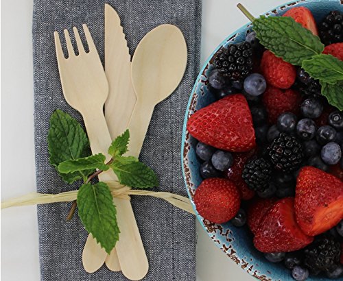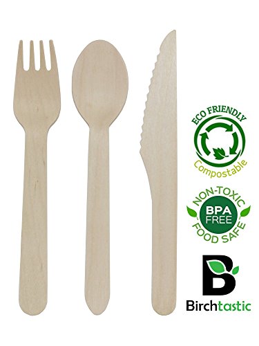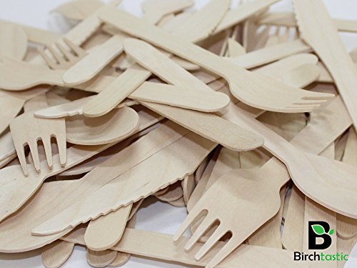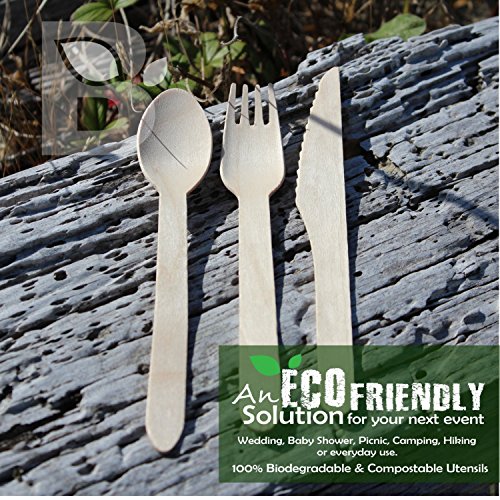 Wooden Disposable Cutlery Set - 200pcs 100 Forks, 50 Spoons, 50 Knives 6.25" Utensils | Eco-Friendly Compostable Biodegradable | Parties, Weddings - FORGET Plastic, GO GREEN!