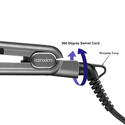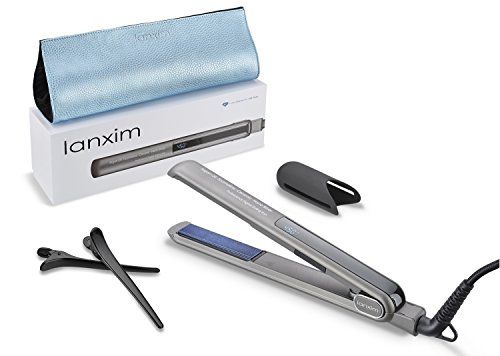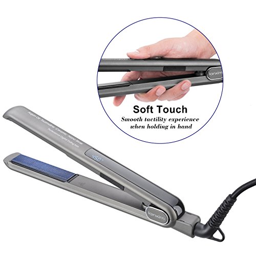 Title : Lanxim Digital Tourmaline Ceramic Flat Iron Hair Straightener with Heat Resistant Fashion Travel Bag and Protective Plate Guard Holder, Gray
