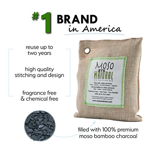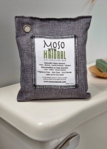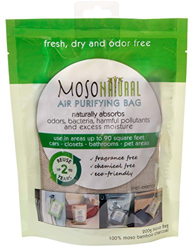 Moso Natural Air Purifying Bag. Odor Eliminator for Cars, Closets, Bathrooms and Pet Areas. Captures and Eliminates Odors. Natural Color, 200-G