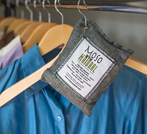 Moso Natural Air Purifying Bag. Odor Eliminator for Cars, Closets, Bathrooms and Pet Areas. Captures and Eliminates Odors. Charcoal Color, 200-G