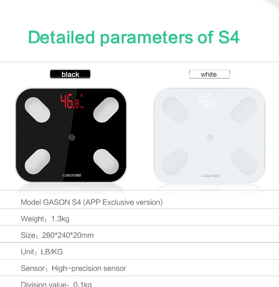 GASON S4 LED Bathroom Digital Body Fat floor Scale Fat Scalesmart weighing support Android4.3 IOS7.0 Bluetooth 4.0 Losing Weight