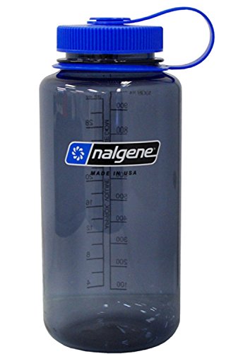 Nalgene BPA Free Tritan Wide Mouth Water Bottle, 1-Quart, Gray with Blue Lid