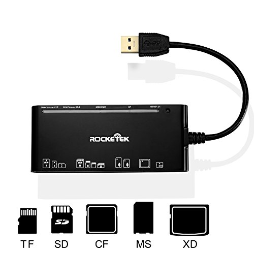 Rocketek USB 3.0 Memory Card Reader/Writer for CF Card, xD Card, SD Card, Micro SD Card, MS Card adn MS micro Card, with a 13cm USB Cable design - 5 cards read simultaneously