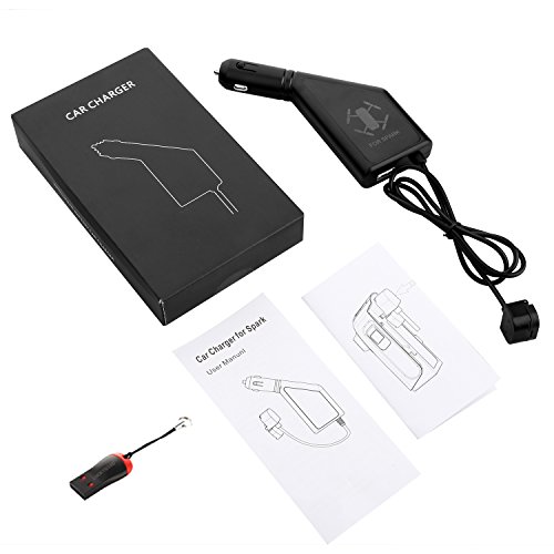 Luckybird Car Charger for DJI Spark with One Battery Charging Port & One USB Charging Port, DJI Spark Accessory,with Luckybird USB Reader 1pc