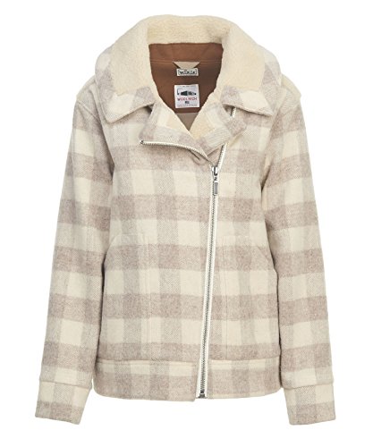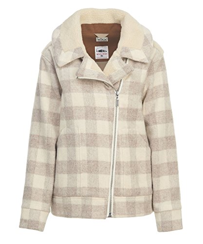 Studio : Woolrich White Collection Womens Outerwear Publisher : Woolrich White Collection Womens Outerwear Binding : Apparel Product Description A fun and rustic take on the moto jacket style. Made with a beautiful neutral color buffalo plaid wool and sherpa lining on the collar. 0