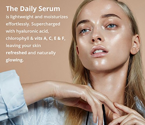-. Feature : THIS FACE SERUM IS A GREEN JUICE FOR YOUR FACE. This products has a ton of chlorophyll which gives it, its green color. Chlorophyll, oxygenates the skin which speeds the healing process of it, giving you an immediate healthy glow. / YOU PROBABLY HAVE A DEHYDRATED COMPLEXION. Dullness, flushed or red areas, dry patches, oiliness -- those are symp of insufficient water in your skin. Girl, you've gotta try THIS hydrating serum. / A MULTI-VITAMIN SERUM THAT COVERS ALL YOUR ANTI-AGING BASIS. A super-naturally charged serum with vitamins C, E, A and F. Celebrity clients of Joanna Vargas call this hyaluronic acid serum their "fountain of youth." / HYALURONIC ACID IS MOTHER NATURE'S MIRACLE FOR HYDRATING, firming and brightening your skin. The Daily Serum will moisturize your skin without clogging your pores because it is a light, water base serum. It penetrates better and as a result will balance your moisture levels. / THIS SERUM WILL NOT ADD ANY WEIGHT TO YOUR SKIN. This is an airy serum that allows your makeup to go on better, smoother and stay fresher, longer, giving you that extra glow till the end of the day.