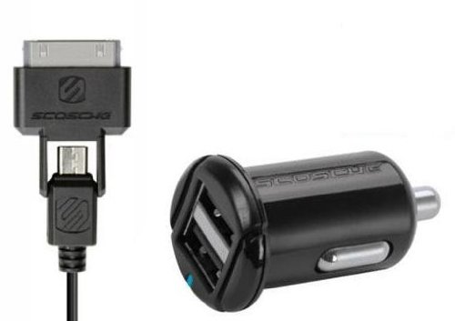 -. Title : SCOSCHE Dual 10 Watt (2.1A) USB Car Charger with Charge/Sync Cable - Black