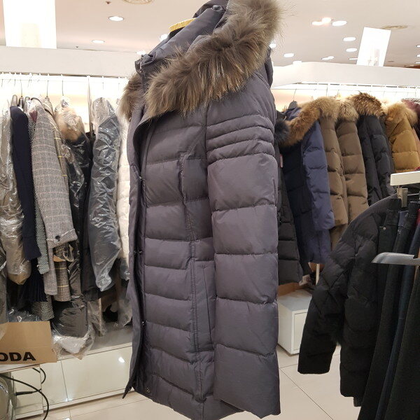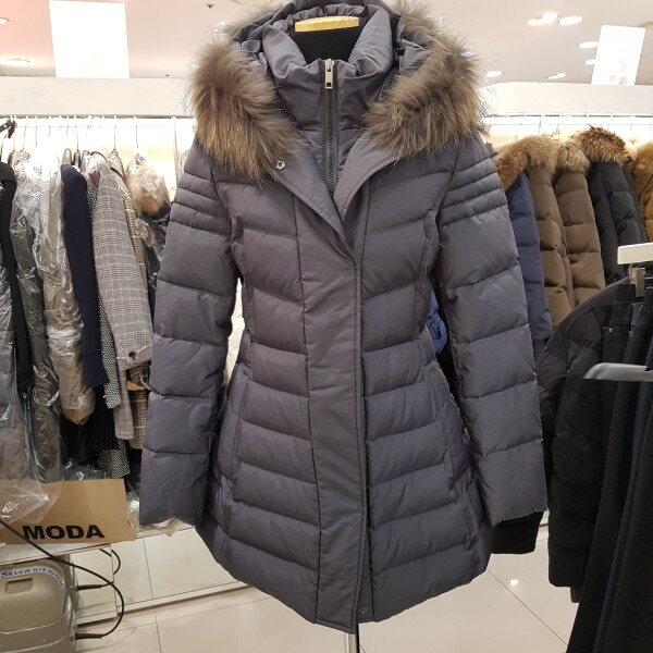 핏감이예픈 덕다운패딩입니다.백벨트모양은 탈착이가능하구요,후드퍼는 라쿤퍼입니다 어깨선에 절개라인으로 팔라인도슬림하게 잡아준 패딩입니다.총장73품단면46센티정도입니다.