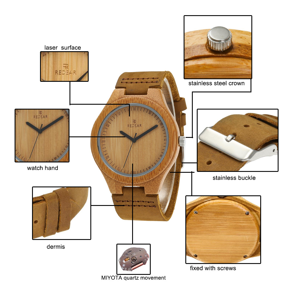 设计简单大方 经典高贵。纯天然竹子 檀木材质,纯天然竹子 檀木表盘,让您更亲近大自然。特别是檀木:气味芬芳,檀木的香气有安气定神之功效,闻之能稳定人的情绪且有助于睡眠,长期闻之于人的心、肝、脾、肾都有所助益。