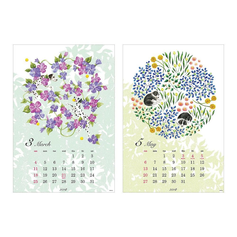The artist mia, an attractive artist with a delicate and beautiful touch, is a calendar that draws the dogs playing in the garden frantically.