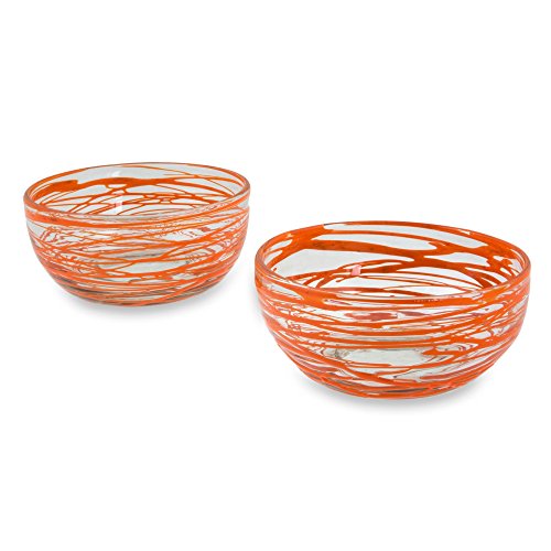NOVICA Hand Blown Clear Orange Eco-Friendly Glass Bowls, 10 oz. 'Tangerine Swirl' (pair)