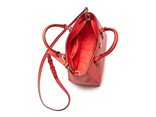 Understated and refined, this shrunken Tory Burch satchel with an optional crossbody strap features high-quality saffiano leather and rich gold-tone accents for a polished finish.Feature