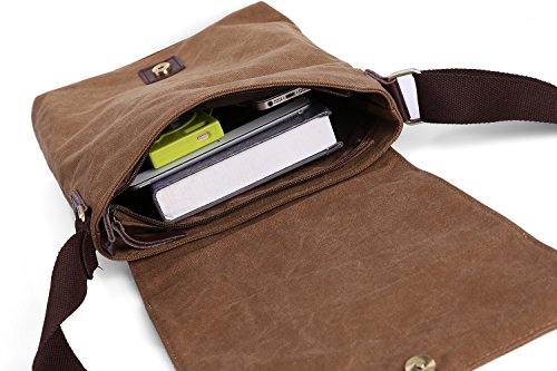 -. Binding : Misc. -. Brand : MALEDEN -. Feature : Main Material:The vintage sling bag is made from premium cotton canvas and head layer leather, soft but sturdy and durable. / Well Organized Messenger Bag:5 pockets design.1 main compartment has a zipper and fits 10 inch iPad with plenty of room to spare;1 back zipper pocket;the inside has two open pockets and a zipper pocket. / Multipurpose Crossbody Bag:Simple leisure style for women and men,also perfect for outdoor hiking, school, working, travel, or casual outings and so on. / Suitable Outing Organizer:9.84inch(L)x12.2inch(H)x2.36inch(W);Capacity: 4.65L.Size:Small. Enough for outing essentials,such as mobile phones,wallets,10" laptop,1-2 A6 books,glasses or umbralle. / Brand Guranteed: MALEDEN is commited to outdoor products.The canvas messenger bag is specially designed for outing necessities. -. IsAutographed : 0 -. IsMemorabilia : 0 -. Label : Maleden -. Manufacturer : Maleden -. PackageQuantity : 1 -. ProductGroup : Sports -. ProductTypeName : SPORTING_GOODS -. Publisher : Maleden -. Studio : Maleden -. Title : Canvas Messenger Bag, MALEDEN Unisex Casual Shoulder Satchel Crossbody Bag for Outdoor Activities, Travel and School