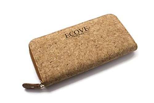 ECOVE - hochwertige und elegante Kork Damengeldborse, Portemonnaie, Geldborse mit vielen Fachern, Grosse: 20cm x 10cm