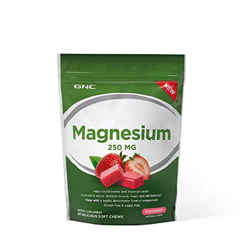 Studio : GNC Publisher : GNC Binding : Health and Beauty Product Description Helps build bones and maintain teeth.brInvolved in nerve, skeletal muscle, heart and cell function.brMade with a highly absorbably form of magnesium.brGluten-free sugar-free.brbrMagnesium Soft Chews are a convenient alternative to pills and a great addition to your daily nutrition and health regimen. Just two soft chews provide 250 mg of magnesium, an essential mineral. Our Magnesium Soft Chews are made with magnesium citrate, a form of magnesium that is absorbed more easily by the body so you get the maximum benefits.brMagnesium helps build strong bones and maintain healthy teeth. Its also involved in heart, skeletal muscle, nerve and cell function, and its required by the body for energy production.brThese delicious soft chews are gluten and sugar-free. Plus theyre individually wrapped, making them easy to take on the go. 0