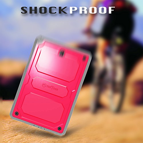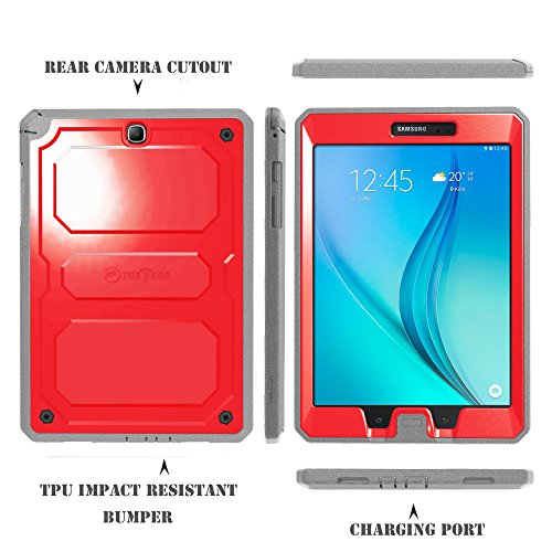 [Description] Dual layer Tuatara series case designed for Samsung Galaxy Tab A 9.7 (SM-T550) Hybrid soft shock absorption TPU skin & impact-resistant polycarbonate reptile-like hard shell back cover provides outstanding protection for the ultimate drop defense Integrated front cover screen protector prevents scratches without sacrificing sensitivity or visibility All features EASILY accessible with case installed. Button and port cover guards limit dust exposure Available in a variety of bright and fun colors.