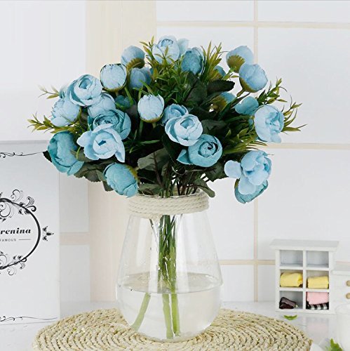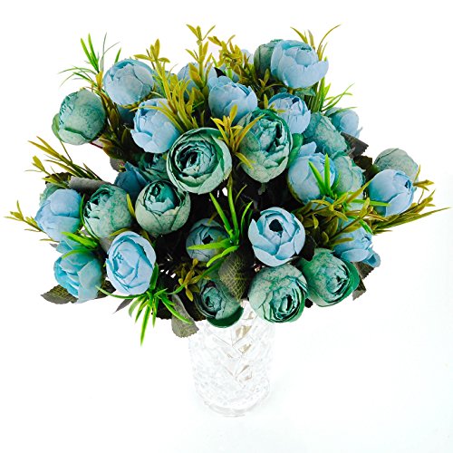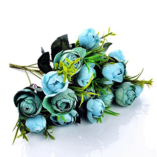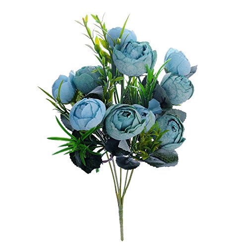Dapeng 2 Pack of 10 Heads Artificial Silk Fake Flowers Leaf Rose Wedding Floral Decor Bouquet (blue)