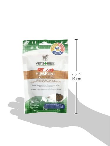 -. Feature : Vet's Best Advanced Hip + Joint Soft Chews (30ct) for dogs provides advanced support for healthy joint function and mobility in a Once-A-Day soft chew / Hip and Joint Soft Chews are formulated with Glucosamine, Chondroitin, MSM, Green-Lipped Mussel, & Omega 3 Fatty Acid to help maximize joint mobility / Made with OptiLife3* Formula, a natural Ocean Kelp, provides Antioxidants and Prebotics to help support a healthy immune system and digestive health / Veterinarian-formulated and recommended - Advanced Hip + Joint soft chews have a high level of bioavailability for optimal absorption and uptake / One package contains 30 soft chew supplements, in a delicious once-per-day treat for dogs and puppies (over 12 weeks old) up to 75 lbs