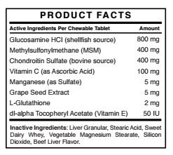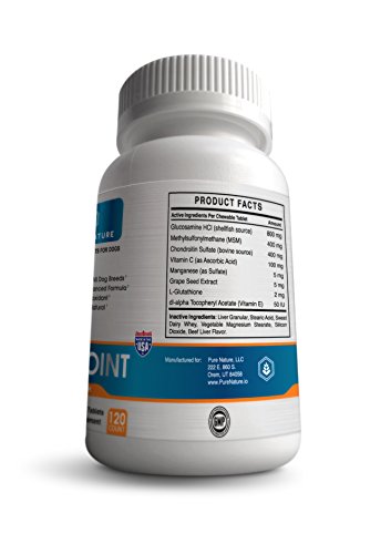 -. Feature : 120 Chewable Tablets Hip and Joint Health / Advanced Formula Promotes Healthy Joints, Improves Mobility and Eases Discomfort / With MSM, a Naturally Occurring Organic Compound / Safe and Effective Formula Specifically For Dogs / Proudly Made in the USA Under Strict Quality Standards