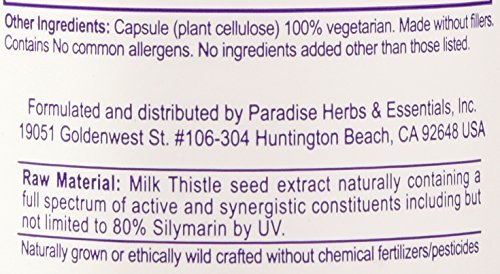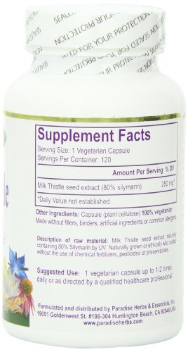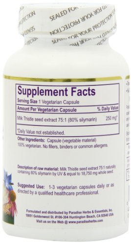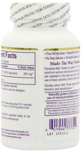 Product DescriptionParadise Herbs Milk Thistle 75:1 80% Vegetarian Capsules,0