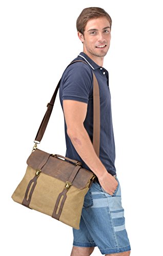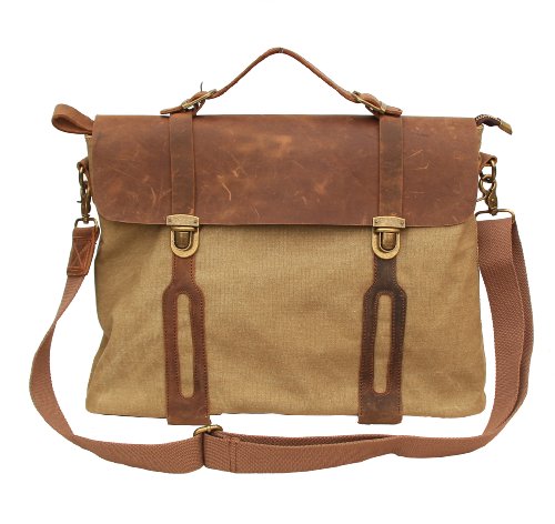 -. Title : Gootium 30311 Cotton Canvas Full Grain Leather Laptop Messenger Bag, Briefcase