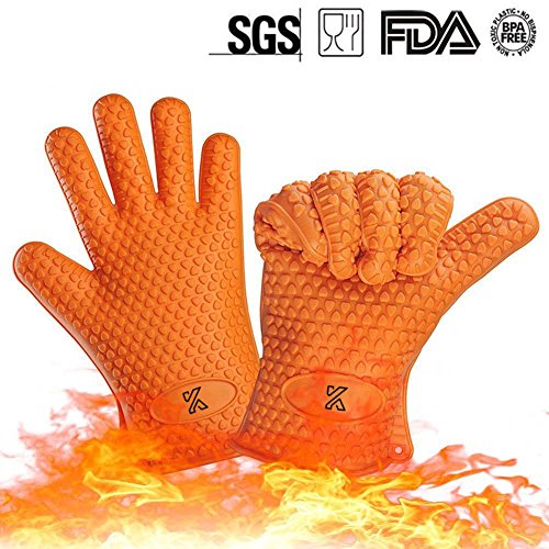 - ●HIGH QUALITY FOOD-GRADE SILICONE MATERIALS:heat resistant grilling accessories passed the FDA and LFGB certificate,crafted with enhanced food-grade safe silicone that handles even the hottest temperatures and inside the gloves thumb and index finger with 3 mm special thickening insulating layer,you can protect your fingers and hand