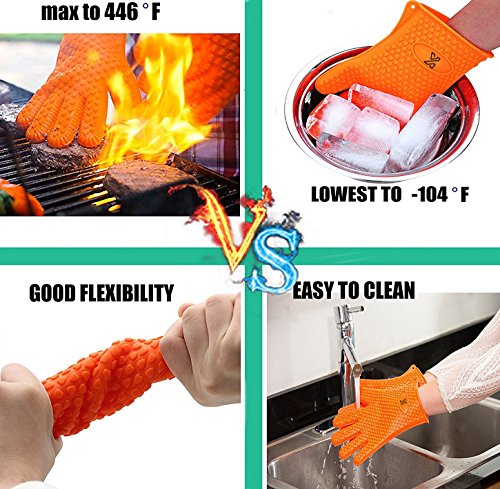 - ●EASY TO CLEAN:just throw them into the dishwasher or wash by hand with warm soapy. Silicone BBQ gloves for cooking and grilling are superior to anything typical of potholders or gloves