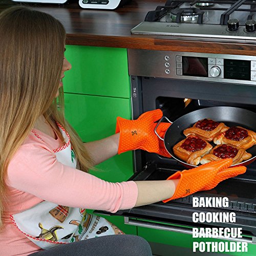 Silicone BBQ Gloves Waterproof Oven Mitts -Heat Resistant Grilling Accessories & Home Kitchen Tools for Cooking, Baking,Barbecue,Potholder (orange)