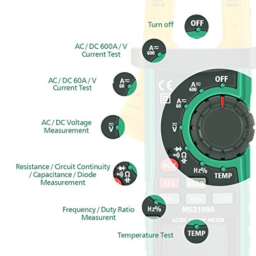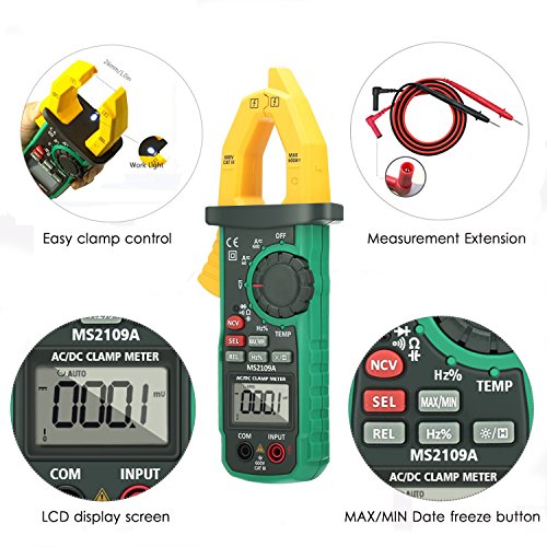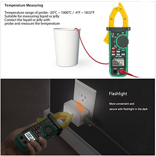 Digital Clamp Meter, LIUMY Auto-Ranging AC/DC Clamp Multimeter with NCV, Work Light/ Memory peak, Non- contact Voltages/ Frequency/ Resistance/ Capacitance/ Connections/ Diodes and Temperature
