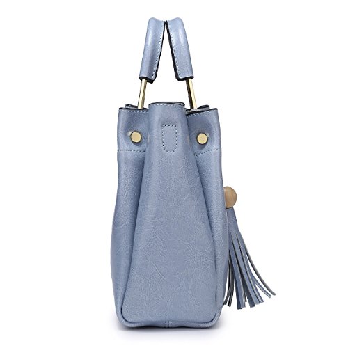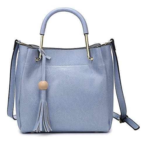 Sulandy Women Genuine Leather Small Top-handles Handbag Tote Bag with Long Shoulder Strap