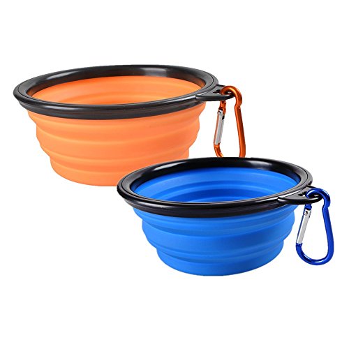 QUALITY GUARANTEE - We have good reputation on our dog bowl in USA Market. We are confident with our travel dog bowl Here we can provide you ONE YEAR warranty. If you meet any problem about our bowls during guaranty time, we will delivery the new one to you. Material: Silicone Width: 5.1 in Max Height: 2.1 in Min Height: 0.5 in Product Weight: 2.3 oz color:Blue orange 0