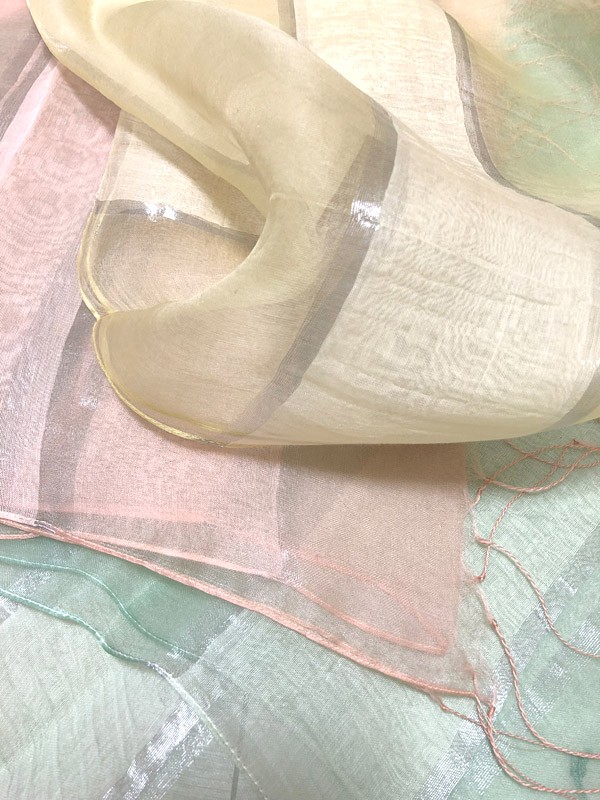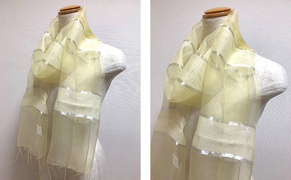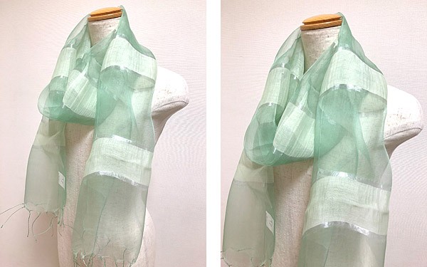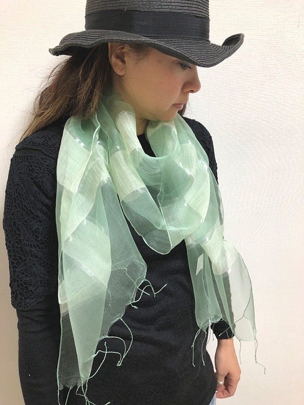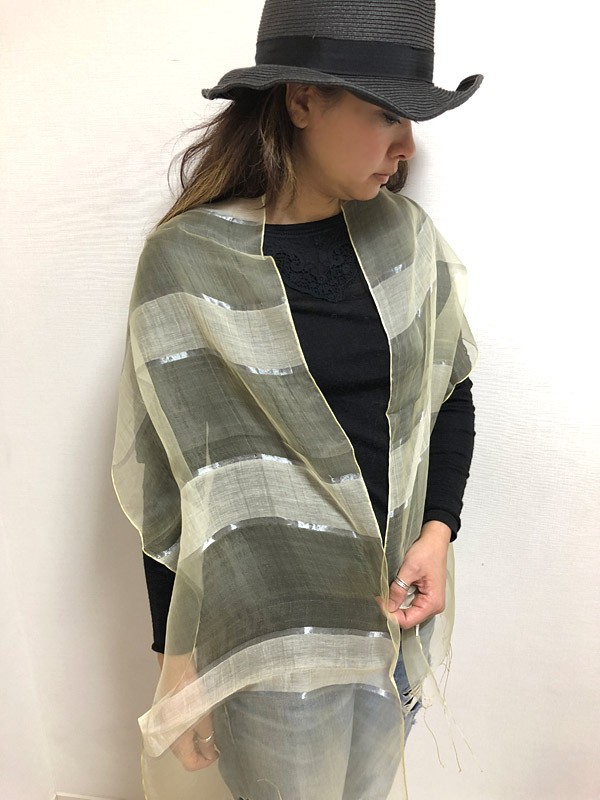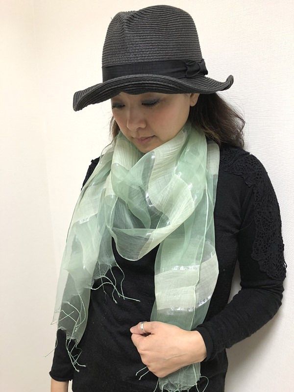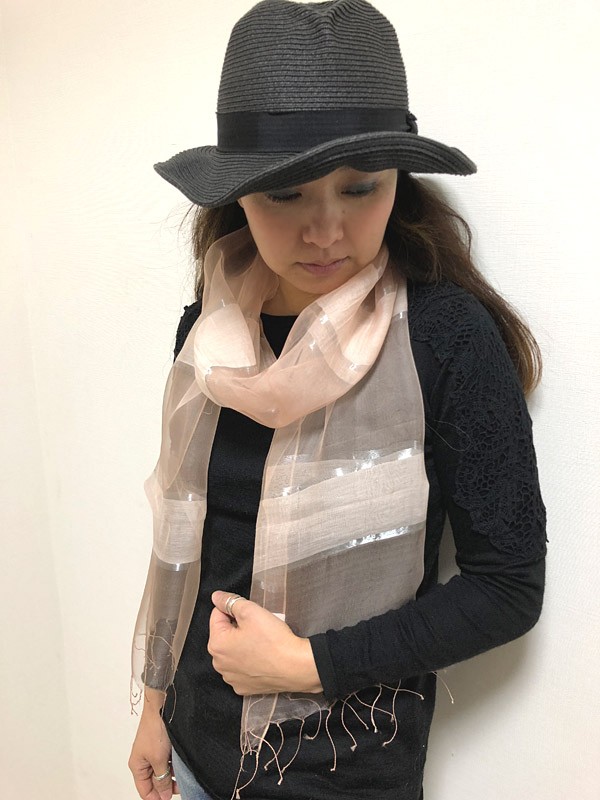 つややかな銀糸のラインが特徴のパステルカラーストールです♡ふんわりとしたシルク混の素材と透け感が目を惹く、春気分を盛り上げてくれる1枚。リッチなシルクのつやと色彩が、ほほに照り返すから顔周りもグッと明るくに見せてくれます♪単色の色づかいだから合わせやすく、コーデに一枚加えるだけで全身が華やかな印象に☆カジュアル使いも良し、スーツスタイルにも◎。パーティシーンでも活躍します。ピンク、グリーン、イエローの3色展開です。