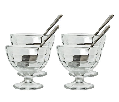 -. Title : Generic Clear Glass Footed Dessert Bowls with 4 Stainless Steel Spoons