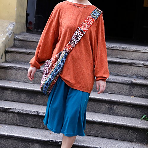 Medium Size Ethnic Style Bag Lady's Everyday Crossbody Shoulder Bags Women Tourist Cotton Bucket Bag
