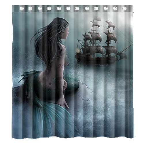 Custom Mermaid and the Sailing Ship Waterproof Polyester Fabric Bathroom Shower Curtain Standard Size 66(w)x72(h)
