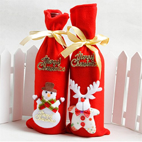 Studio : GUAngqi Publisher : GUAngqi Product Description p>Description Item color: As picture show Item Material: Non-Woven Item size: Length of about 34 * 11.5cm error of about 1cm Ttem Package: 1 PC MATERIAL:Non-Woven Fabric. Fits a standard sized bottle of wine - Store wine bottles or treats inside Cute and adorable for kids and adults. SUITABLE FOR: Christmas decorations supplies, for holding your Christmas gift, candys or wine. Add a festive look to your holiday party with Santa Claus wine bottle Covers. 0 |