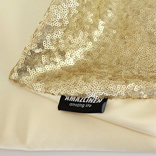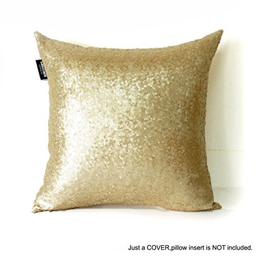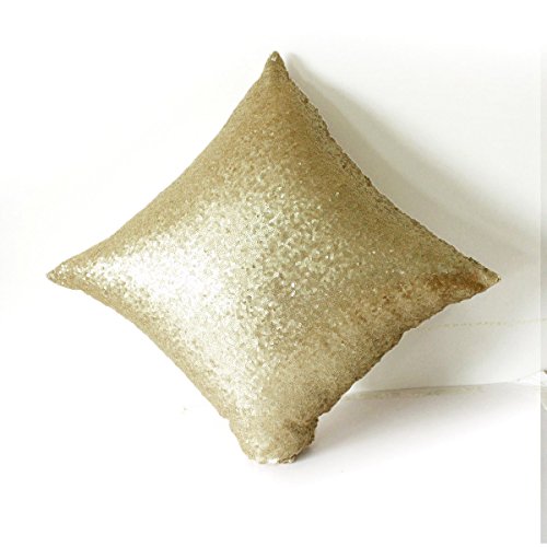 AMAZLINEN(TM) Decorative Glitzy Sequin & Comfy Satin Knit Throw Pillow Cover 18 x 18 Pillow Covers,Hidden Zipper Design(Champagne Gold)