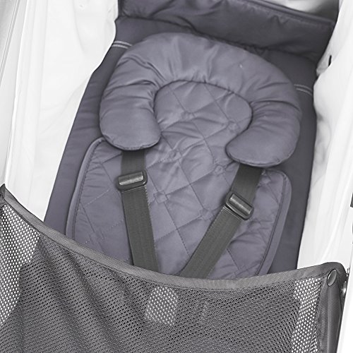 Independent one-handed actuated recline with 4 seat positions, lay flat for travel from birth with included headrest and foot barrier