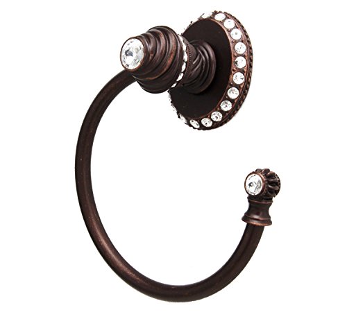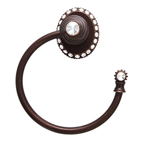 Carpe Diem Hardware 1848-22C Cache II Large Towel Ring Right with Side Crystals Large Escutcheon Made with Swarovski Elements, Oil Rub Bronze