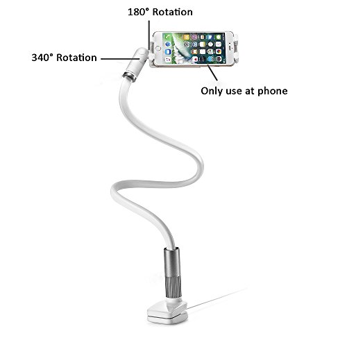 Cell Phone Holder clip,Cell Phone Holder Stand lamp,Bavier Flexible Long Arm Universal desktop Mount Holder,Led Bedside,2 in 1 Bed Lazy Bracket for iPhone,Samsung,Blackberry,Holder lamp (white)