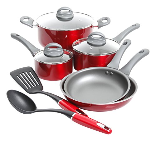 The Oster Herscher Non-Stick Aluminum Cookware is ideal for frying up eggs and making pasta dishes. The translucent red completes the look of your kitchen with a pop of color. Keep safe with the soft touch handle to help prevent burns to your hands. Non-Stick interior provides you with easy clean after every dish you create.Feature
