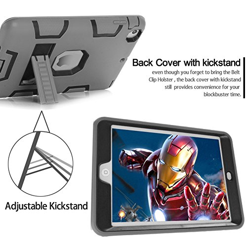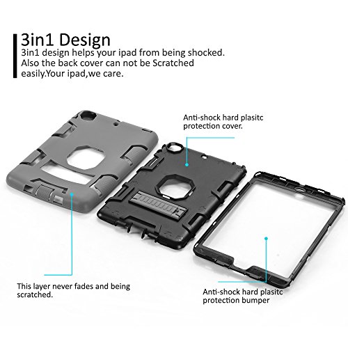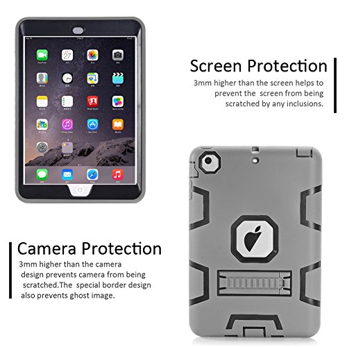 Topsky 2877893 Shock-Absorption Three Layer Armor Defender Full Body Protective Case for iPad Mini, Mini 2 , Mini 3, Mini Retina - Grey Black